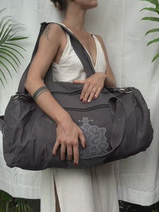 Beautiful Chintamani Alchemistry Large Duffle Bag is made for traveling in style. It is quite spacious, and can contain everything necessary for a short trip, while still being qualified as hand baggage. Also, it is very handy for carrying around your sport and practice equipment – for instance, yoga mat fits inside perfectly! This soft stylish bag is decorated with sacred Shipibo Conibo patterns and geometric tribal stitching. The zipped pocket in front has a little complimentary Feather Pendant – our signature symbol of Lightness and Freedom. Just exactly what this bag was made for!
