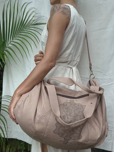 Beautiful Chintamani Alchemistry Large Duffle Bag is made for traveling in style. It is quite spacious, and can contain everything necessary for a short trip, while still being qualified as hand baggage. Also, it is very handy for carrying around your sport and practice equipment – for instance, yoga mat fits inside perfectly! This soft stylish bag is decorated with sacred Shipibo Conibo patterns and geometric tribal stitching. The zipped pocket in front has a little complimentary Feather Pendant – our signature symbol of Lightness and Freedom. Just exactly what this bag was made for!