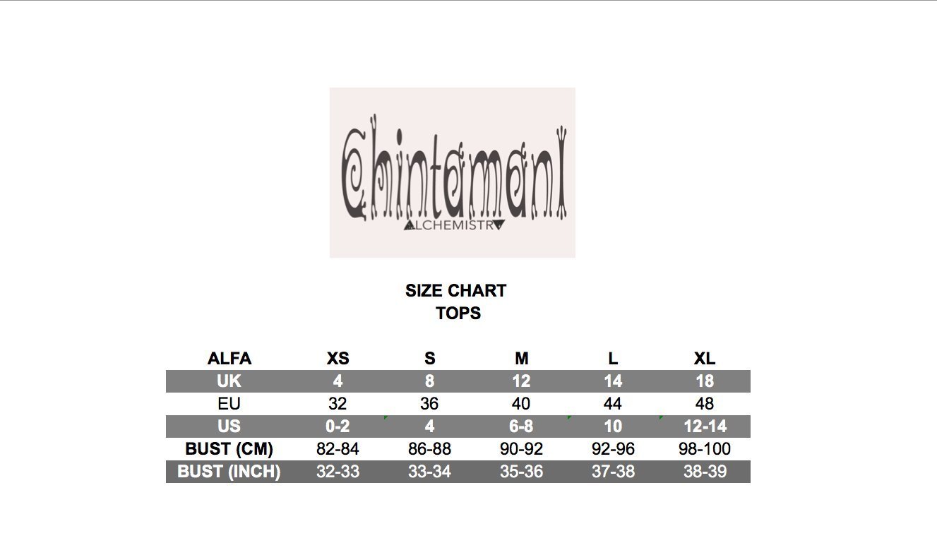 All Chintamani Items are made by small home factories in India and Indonesia. We care about every piece quality and intend to make our clothes special, reflecting authentic tribal vibes in a gentle classy way.